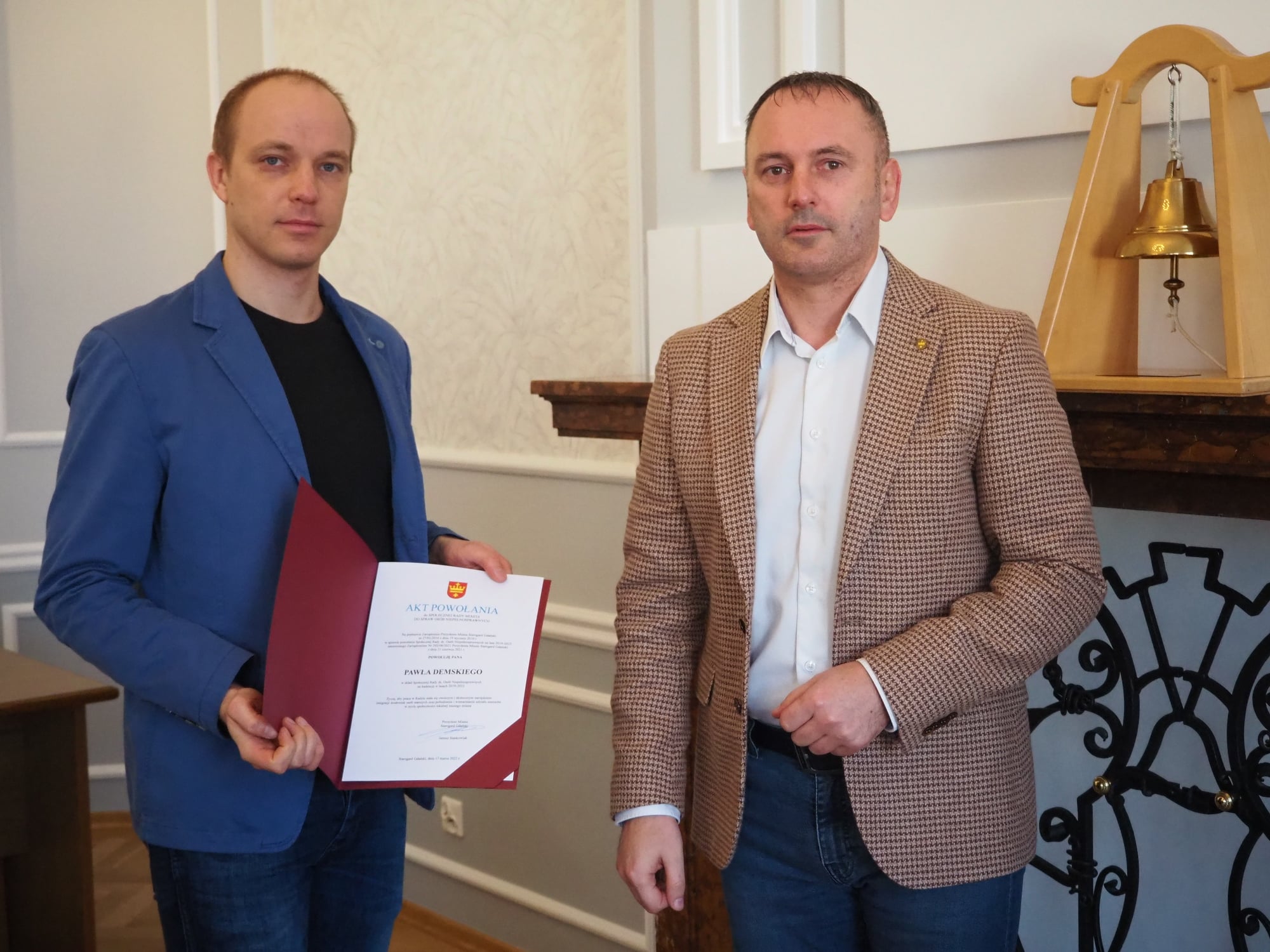 Podczas posiedzenia Zastępca Prezydenta Miasta ds. Społecznych Maciej Kalinowski wręczył akty powołania dwóm nowym członkom Społecznej Rady ds Osób Niepełnosprawnych, Pawłowi Demskiemu – przedstawicielowi Stowarzyszenia Sportowo-Rehabilitacyjnego START-ON Starogard Gdański oraz Henrykowi Redzimskiemu – pracownikowi Wydziału Techniczno-Inwestycyjnego Urzędu Miasta Starogard Gdański.